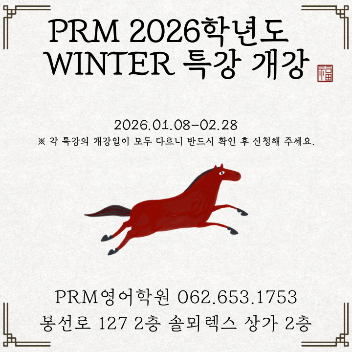 2026년 PRM WINTER 특강 개강