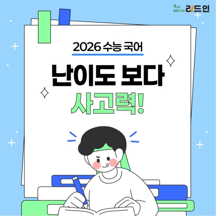 2026 수능 국어, 핵심만 짚어 정리했습니다! 올해 수능 국어는 작년 수능에 비해 사고력·추론력·정보 구조화 능력을 더 강하게 요구했습니다. 그래서 다시 한번 확인했습니다. 장문 독서와 단문 훈련을 함께 가져가는 리드인의 방식이 수능형 사고력을 준비하는 가장 확실한 방법이라는 점을요. <img src="https://blogthumb.pstatic.net/MjAyNTExMTlfMjY2/MDAxNzYzNDg1ODcwMDkz.bDXUmSnfFdfET1APQL8oTh1iqw3euCDmBHdiScaDP1Qg.NmbAfsJaqz0gtS1ca_WSoa5lOa44mK9fUKcMH-BYs98g.JPEG/4D732490%A3%AD44DE%A3%AD4276%A3%ADA56D%A3%AD5D226140BC09.jpg?type=s3" />