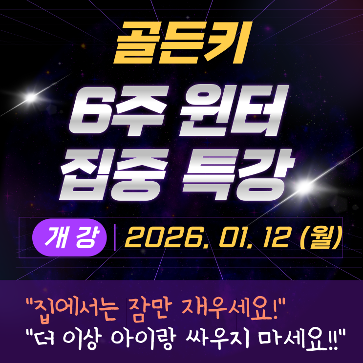 [광주 첨단 겨울방학 학원] 골든키 6주 윈터 집중특강 안내 겨울방학을 앞두고 많은 학부모님들이 "방학 동안 어떤 학습을 해야 성적이 오를까?", "예비중·예비고 준비는 언제부터 시작하는 게 맞을까?" 하는 고민을 많이 하십니다. 특히 광주 첨단 지역은 학교별 학습 난이도와 진행 속도가 다르기 때문에 방학 기간에 전략적인 플랜 + 학습 루틴을 잡는 것이 중요합니다. 이번 겨울, **골든키영수학원**에서는 예비중부터 고1까지를 대상으로 6주 집중 겨울방학 특강을 진행합니다. 집에서는 잠만 재우세요. 공부 루틴과 성적 상승은 골든키에서 책임지겠습니다. 골든키 6주 윈터 집중특강 일정 모집 기간: 2025.11.2....... <img src="https://blogthumb.pstatic.net/MjAyNTExMjBfMjcz/MDAxNzYzNjQ2Nzg5MDU4._v7wWPPpywJ21oxB9sCSwBfZKXWGBlaeb0m92ze9gqUg.hazSiCTlcpQbAJSldnIIlGzt0pQL5lUMRgrKLmrxU1cg.PNG/1.png?type=s3" />