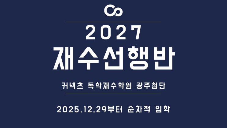 ⭐ 2027학년도 재수선행반 모집 커넥츠 프랩 수능관 첨단점 이 시기가 되면 늘 같은 고민을 시작합니다. “지금 선행을 얼마나 해두어야 할까?”, “막상 재수의 흐름을 언제부터 잡아야 안정적일까?” 많은 학생이 ‘수능이 끝난 후 3월에 시작해도 된다’고 생각하지만, 1~2월 학습 루틴을 먼저 잡은 학생과 그렇지 못한 학생은 차이가 생깁니다. 커넥츠 프랩 첨단점 재수선행반 핵심 시스템 ✅ FULL CARE 관리 시스템 관리형 재종반과 동일한 시간표 운영 08:40까지 입실·휴대폰 수거, 공부 시간 이동 최소화 하루 14시간 학습 루틴으로 생활·학습 동시 관리 모평·수능 등급 컷 분석, 채점 및 결과 리포트 제공 ✅ 학습 지원 & 정서....... <img src="https://blogthumb.pstatic.net/MjAyNTEyMDdfMjUy/MDAxNzY1MDkxMzEwNjYx.2r8_NgYS2Md_wcxJWlruabgYuKyHXP4E3DUq5LJQyfIg.TjTbqiDsmATeq_PDSqwjthChZ5sB4H-kUgXnG5zx2O8g.JPEG/%C1%A6%B8%F1%C0%BB_%C0%D4%B7%C2%C7%D8%C1%D6%BC%BC%BF%E4._%285%29_2.jpg?type=s3" />