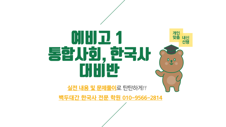 예비고1 통합사회, 한국사 2차 대개강 2025년 12월 8일 월요일 대개강 (한국사 우선 개강, 통합사회는 12월 하순 개강) 예비고 1 통합사회, 한국사 2차 대개강 안녕하십니까? 백두대간 한국사 전문 학원 원장 오정환입니다. 저희 학원에서 예비고 1 통합사회, 한국사를 2차 대개강을 합니다. 1차 개강으로 기존 모집 인원이 모두 모집되어 (현재 일요일 3~5시에 수업 진행) 부득이하게 2차 개강을 하게 되었습니다. (2차 개강 수업 시간은 추후 정할 예정) 보통 부모님들께서 예비고 시즌에는 통합사회를 많이들 걱정 하십니다. 그런데 막상 고등학교 들어가보면 통합사회는 대체로 따라갈만합니다. 모두 다 따라갈만하다는 개념은 물론 아닙니다....... <img src="https://blogthumb.pstatic.net/MjAyNTExMjhfMTI0/MDAxNzY0MzE1ODQ1Mzcy.vtyY37HwGavK_MOpHDYzwsTfi9OLUIgV_6i2fqPXLpwg.KKfgSlEe3sGPRt2s3k19sPtZdagaof8-4TMNTvrR_tog.PNG/%C1%A6%B8%F1%C0%BB_%C0%D4%B7%C2%C7%D8%C1%D6%BC%BC%BF%E4_-001_%281%29.png?type=s3" />