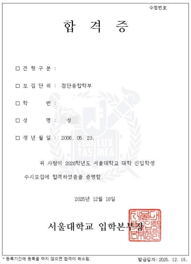 입시는 말보다 결과로 증명해야 한다고 생각합니다. 수시 입시에서 수학크리닉학원 학생들이 정말 의미 있는 성과를 만들어냈습니다. ✔ 명문대 5관왕 + 서울대학교 합격 ✔ 약학대학 진학 ✔ 고려대학교 합격 한 명, 한 명의 결과지만 이 안에는 수학크리닉학원이 지켜온 방향성이 그대로 담겨 있습니다. 학생 ① 명문대 5관왕 그리고 서울대 합격 이 학생은 수시 전형에서 5개 명문대 동시 합격이라는 결과를 만들어냈고 최종적으로 서울대학교 진학을 선택했습니다. 합격 대학에는 연세대학교 고려대학교 한양대학교 등 국내 최상위권 대학들이 포함되어 있었습니다. 이 학생의 특징은 분명했습니다. ✔ 수학 내신의 지속적인 안정....... <img src="https://blogthumb.pstatic.net/MjAyNjAxMTJfMjAg/MDAxNzY4MjEyMzE5MzAz.TcVNKdKNd01cI-YvwVQlhvHnUFFxIh_bVCiiuteH050g.ThloxbSS3j18RjCna77ajPm1dLaaoziiHNGP_muDlkEg.JPEG/KakaoTalk_Photo_2026-01-12-15-36-52-4.jpeg?type=s3" />