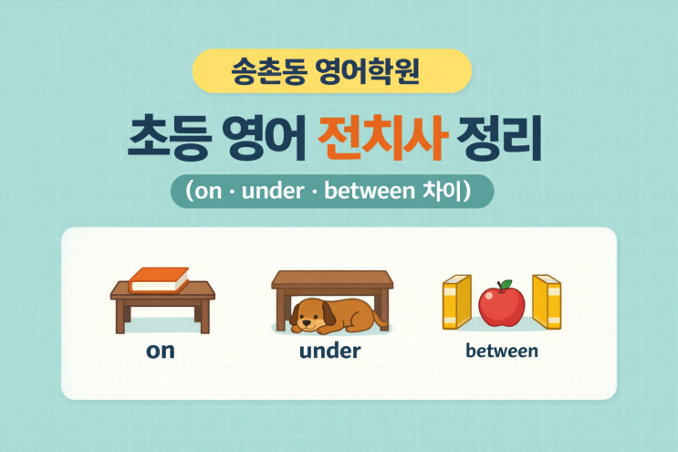 송촌동 영어학원이 알려주는 초등 영어 전치사 정리(on·under·between 차이)