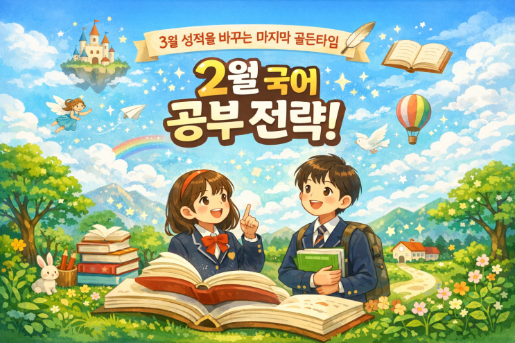 노력은 학생이! 방향은 송촌이룸학원이! 안녕하세요 송촌이룸학원입니다. 3월 개학을 앞둔 2월은 국어 실력의 ‘기초 체력’을 완성할 수 있는 마지막 골든타임입니다. 국어는 단기간에 점수가 급상승하는 과목이 아닙니다. 그래서 이 시기에는 ❌ 무작정 양을 늘리기보다 ⭕ 학년별 취약점 보완 + 루틴 정착에 집중해야 3월 이후 눈에 띄는 성과를 기대할 수 있습니다. 오늘은 중등 · 고등 학년별 2월 국어 공부 전략과 송촌이룸학원만의 국어 관리 방향을 함께 정리해 드리겠습니다 ✨ 2월 국어 공부의 공통 원칙 (중·고 공통) ✔️ 매일 40~60분 고정 루틴 독해 20분 + 문법·문제 20~40분 ‘조금씩, 매일’이 국어 성....... <img src="https://blogthumb.pstatic.net/MjAyNjAyMDRfMTg1/MDAxNzcwMjA2NDI1NzA1.ozXVtwymGVTRWqBJJoBu69CohkI7Zbqdh8ghA3k-ARwg.BKsw-KpMVi7wWdLoZTwnI8jrIYG3oVNSnqX0B6RIoOcg.PNG/ChatGPT_Image_2026%B3%E2_2%BF%F9_4%C0%CF_%BF%C0%C8%C4_09_00_14.png?type=s3" />