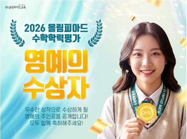2026 올림피아드 수학학력평가에서 우리 학생들이 우수한 성적으로 수상하였습니다. 모든 학생들 진심으로 축하합니다! [대 상] 중1 정O우 [최 우 수 상] 초3 박O연 초6 김O연 중1 최O서 [우 수 상] 초5 최O우 초6 김O온 김O우 중1 박O빈 신O재 [장 려 상] 초4 김O율 최O서 초5 이O석 김O솔 양O필 김O희 초6 허O준 강O민 김O윤 중1 최O인 강O미 권O주 황O민 최O성 중2 안O우 유O우 김O구 홍O원 OME는 단순한 계산 능력이 아닌 개념 이해와 문제 해결력을 바탕으로 한 깊이 있는 사고력을 평가하는 시험입니다. 수업 시간에도 어려운 문제를 끝까지 고민하고 해결하려는 유투엠 수원정자캠퍼스 학생들! 이러한 꾸준한 노력과 학습 과정이 이번 좋....... <img src="https://blogthumb.pstatic.net/MjAyNjAzMTJfMjE5/MDAxNzczMzE1NTUxMDg1.aRplDcydgR3WMOLWYLrbvV8aB1XPFeXgx2sQ4JOJjjQg.suEvo8Zi-GTbY-iyyfqKTgnVLFIaagQgD4MNsXSfhdog.JPEG/%BF%C3%B8%B2%C7%C7%BE%C6%B5%E5_%BC%F6%BB%F3.jpg?type=s3" />