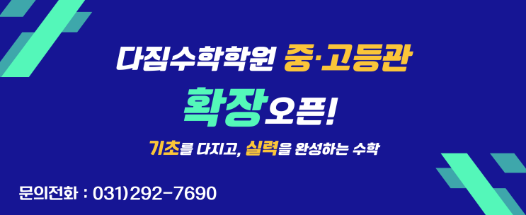 안녕하세요 :) 다짐수학학원입니다. 오늘은 반가운 소식을 전해드리려고 합니다. 드디어 다짐수학학원 중·고등관이 4월 중 확장 오픈 예정입니다. 이번 확장 오픈은 단순히 공간만 넓어지는 것이 아닙니다. 중학생과 고등학생에게 꼭 맞는 학습 환경, 그리고 더욱 체계적인 수학 수업을 위해 준비한 새로운 시작입니다. ✨ 기초를 다지고, 실력을 완성하는 수학입니다 수학은 한 번 놓치면 뒤로 갈수록 더 어렵게 느껴지는 과목입니다. 그래서 다짐수학학원은 무작정 많은 문제를 푸는 방식보다, 기초를 탄탄히 다지고 실력을 제대로 완성하는 공부를 더 중요하게 생각합니다. 개념을 정확히 이해하고, 문제에 적용해보고, 틀린 부분은....... <img src="https://blogthumb.pstatic.net/MjAyNjAzMThfMTY1/MDAxNzczODE5MzQ5MzY5.O2JMKUw3UI52vZtK0MpULUKMhIEwM87I1wptKjqbIisg.Hc45PfUaDUBoG8smBajDjPqFqM6dMIjlTYCbA3wnX3Eg.PNG/%C1%A6%B8%F1%C0%BB-%C0%D4%B7%C2%C7%D8%C1%D6%BC%BC%BF%E4_-001.png?type=s3" />