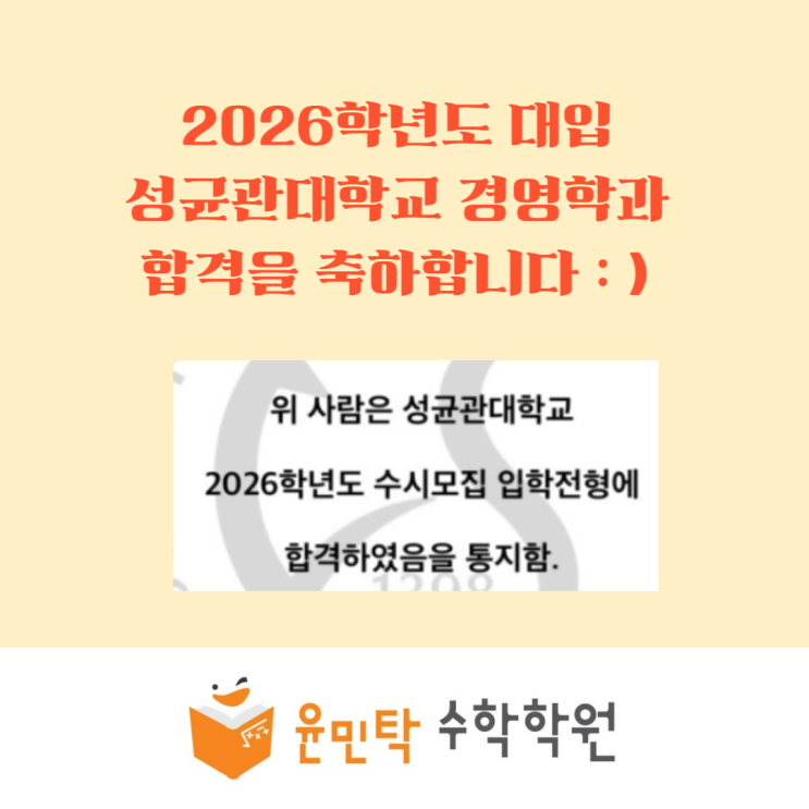 <2026년 대입 결과> 성균관대 경영학과 합격을 축하합니다♡