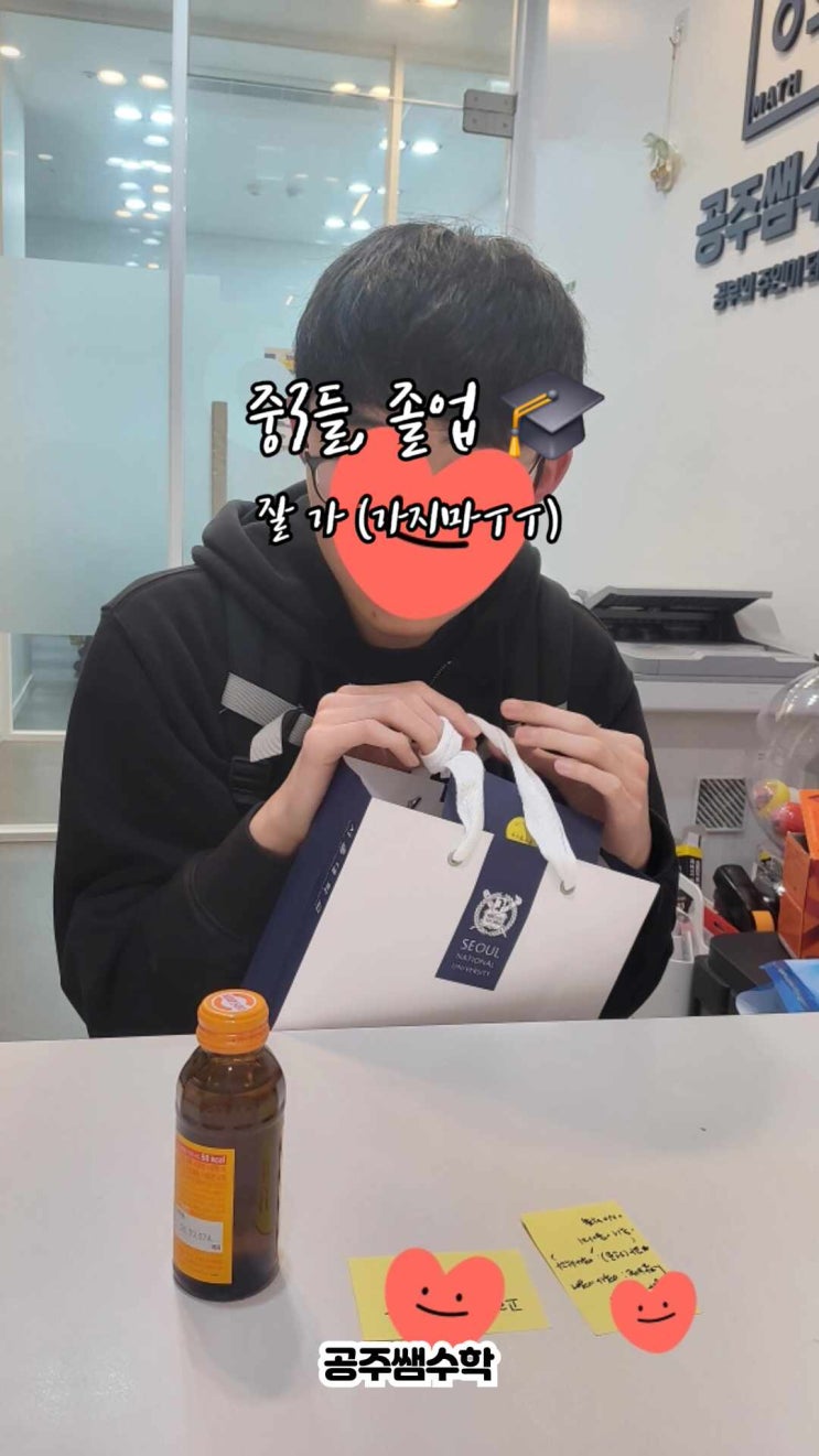 공주쌤수학 중3들 졸업 공통수학1,2 혹은 공통수학1 까지 공부한 우리 학생들! 초5에 온 친구부터 중1때 온 친구까지 다양하지만 중학교 내내 공주쌤수학에서 끈기있게 공부한 우리 학생들, 너무 고맙고 칭찬한다 고딩때도 잘 할 수 있을거야!!! 쌤들이 언제나 응원할게♡ <img src="https://phinf.pstatic.net/image.nmv/blog_2025_11_10_3016/NrGJfSNGmm_03.jpg?type=f480x480" />