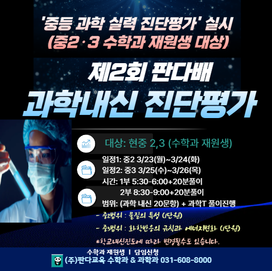 [제2회 판다배] 중2,3 과학, 수학만큼 중요합니다! '중등 과학 실력 진단평가' 실시 안내