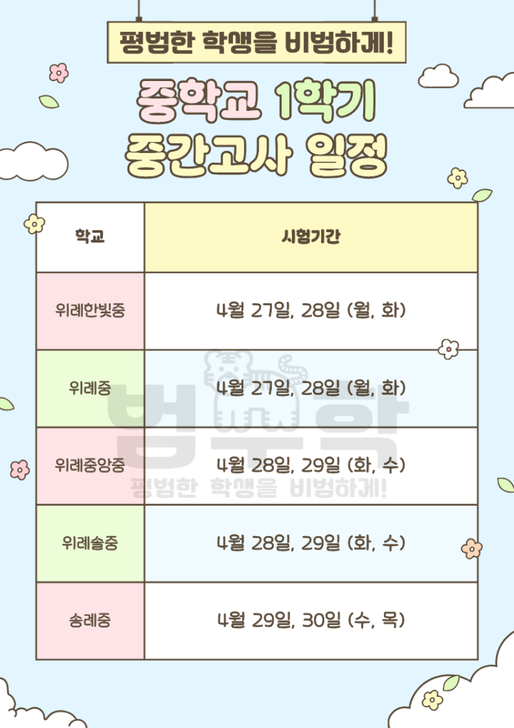 [ 위례 수학학원 / 위례개별수학 ] 2026년 위례 중, 고등학교 1학기 중간고사 일정과 내신 준비