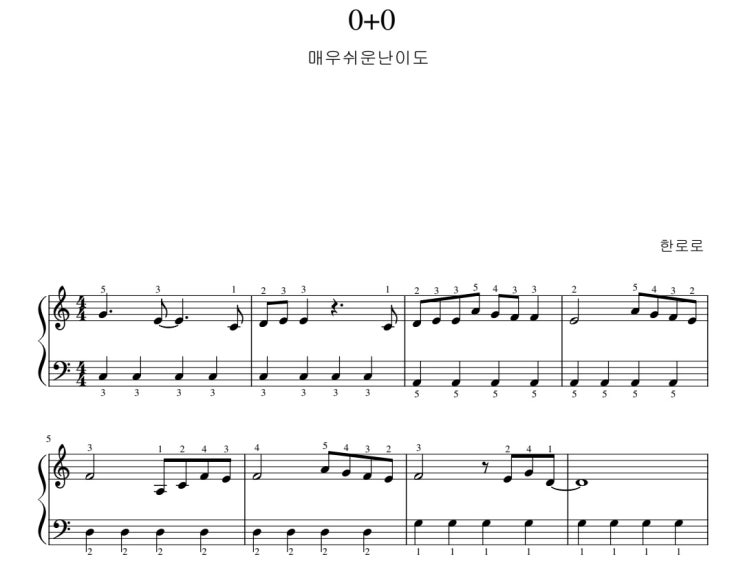한로로 0+0 난이도별 악보모음집 매우쉬움-쉬움-중급-원곡난이도 한로로님의 0+0 난이도별 피아노 악보집입니다. 바이엘을 공부하는 분들부터 체르니40번 이상의 분들까지 수준별로 연습해 볼 수 있도록 편곡했습니다. 매우쉬운 난이도와 쉬운 난이도 악보는 "다장조" 조성으로 만들었습니다. 원곡의(파,도,솔#) 조성이 아니기 때문에 훨씬 수월하게 완성하실 수 있으며, 곡의 길이가 Full version이 아닌 단기간에 완성하실 수 있도록 짧게 만들어진 악보입니다. 이제 본격적으로 난이도별 악보집을 소개해 드리도록 하겠습니다. 매우쉬운난이도 악보 원곡의 조성이 아닌, 다장조 조성으로 샾,플랫 걱정없이 편하게 완성하실 수 있도....... <img src="https://blogthumb.pstatic.net/MjAyNjAzMjVfMTYz/MDAxNzc0NDI4NDczMTQ4.8rrWWoWtK0hot-JKpyTIvJuQP_wHaBPBE1eht9Aq234g._Qxd0yyZbdnfmhwkvDBmbhHAgKl26ZqHQ7ZVTCvWIRgg.JPEG/%C7%D1%B7%CE%B7%CE_%B8%C5%BF%EC%BD%AC%BF%EE%BE%C7%BA%B8.jpg?type=s3" />