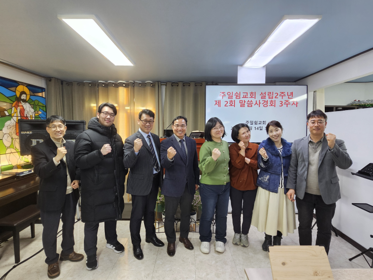 안녕하세요 주일쉼교회입니다 :) 주일쉼교회 설립 2주년 제2회 말씀 사경회가 어느덧 3주차를 맞이했습니다 포천 주일쉼교회 가운데 이어지는 말씀사경회는 매주 지날 때마다 깊은 은혜와 감동을 더해가며 성도들의 삶을 새롭게 하는 귀한 시간이 되고 있습니다 이번 시간에는 그 순간을 함께 나누고자 합니다 은혜로 준비되는 교제의 시간 주일쉼교회 3주차 말씀 사경회가 시작되기 전, 이삭 중앙노회 노회장이신 정광택 목사님을 모시고 함께 다과를 먹으며 따뜻한 교제의 시간을 가졌습니다. 짧은 시간이었지만 말씀과 삶에 대한 이야기를 나누며 마음이 열리고 은혜로 준비되는 시간이었고 기대 가운데 3주차 말씀사경회가 시작되었습니다. 주....... <img src="https://blogthumb.pstatic.net/MjAyNjAzMTlfMTA0/MDAxNzczODg4ODUzMTg4.ZRBl9M6lr2hFCNLlj5mroupeOohltOj9N3MyLCM-EfYg.aNTx9tqBnbJTf9ZQQkFiDJCb1k-AZXL6AVVAGAYPTekg.PNG/image.png?type=s3" />