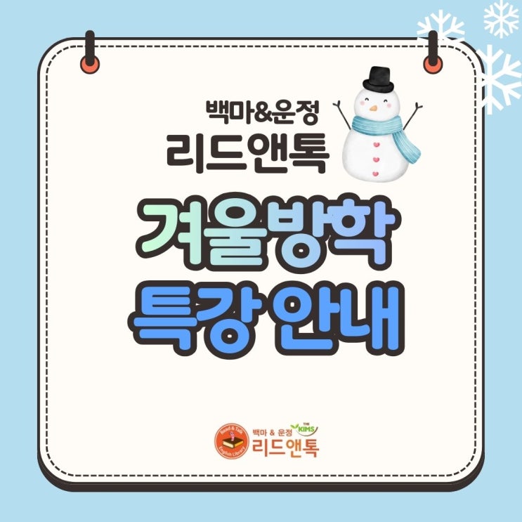백마&운정 리드앤톡 겨울방학 특강 안내