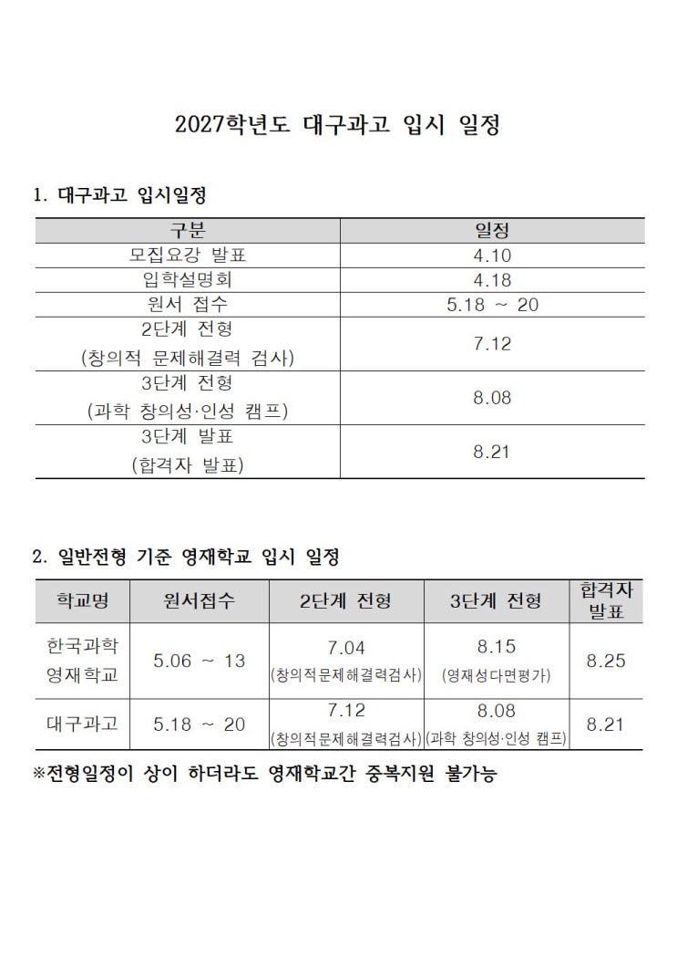 2027 대구과고 입시일정[호평동][포스텍 수학학원]