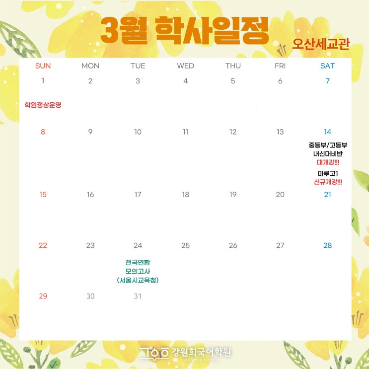 [동탄국어학원] 강원희국어학원 3월 학사일정 안내