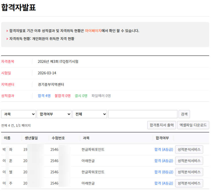 [시흥컴퓨터학원/시흥3d학원]2026년 4월 2일 ITQ합격자 발표(군자컴퓨터정보처리학원)