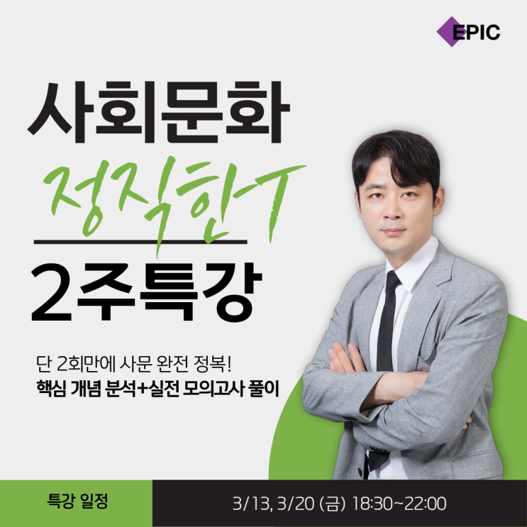 분당에픽 ㅣ 3모대비 수능 사회문화 2주특강 정직한T ㅣ 마감주의
