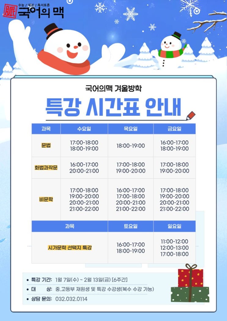 [국어의맥]겨울방학 특강 26년 1월 7일(수) 시작합니다!!