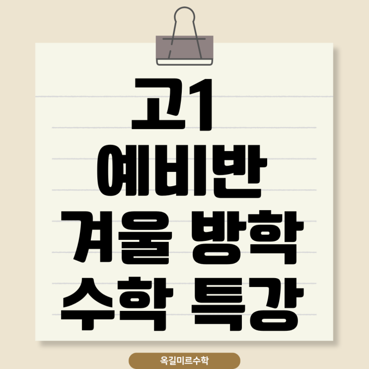 고1 예비반 특강 안내드립니다 고등학교 진학을 앞둔 겨울방학은 수학 학습 방향을 정리하기에 가장 중요한 시기입니다. 특히 고등수학은 학기별 수업 속도가 빠르고, 한 번 놓치면 따라가기 쉽지 않는 구조를 가지고 있습니다. 그래서 언제 어떤 과정을 준비하느냐가 매우 중요합니다. 이를 위해 옥길미르수학에서는 고1 진학을 앞둔 학생들을 대상으로 고1 예비반 겨울방학 특강을 운영합니다. 고1 예비반 특강 일정 기간 : 1월9일 ~ 2월 27일 수업 시간 : 주 3회 (월,수,금) 회당 2시간 설 연휴 휴강 : 2월16일 ~ 18일 특강 구성 및 과목 안내 이번 특강은 학생의 현재 학습 수준과 고등학교 학기 구조를 고려하여 구성되었습니다. 공통수학2 ....... <img src="https://blogthumb.pstatic.net/MjAyNTEyMjBfMjM4/MDAxNzY2MTkwMTAwODM4.8WIKsphbyPNr0Q5q2hWwtt52LUORyVEdJQi6mgG9So0g.mGGSPgNs3BtWnI2KQHFjWxtv2CkDYBinQ_nU42S5J4Ig.PNG/%B0%DC%BF%EF%B9%E6%C7%D0%C6%AF%B0%AD.png?type=s3" />