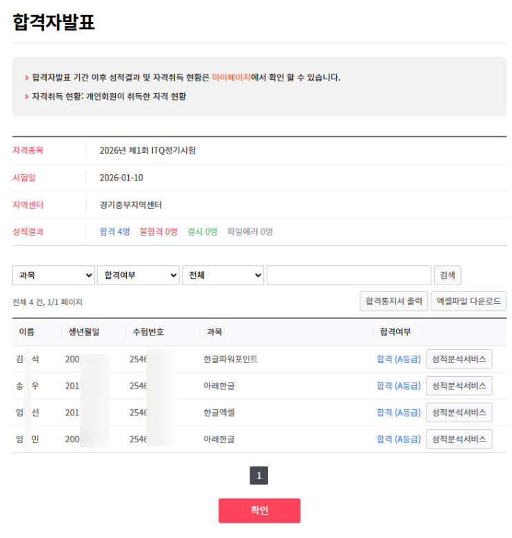 [시흥컴퓨터학원/시흥3d학원]2026년 1월 10일 ITQ합격자 발표(군자컴퓨터정보처리학원)