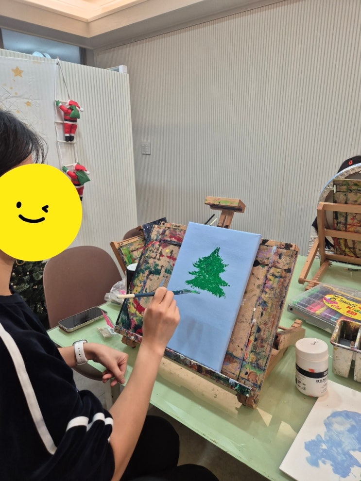 안녕하세요. #장안동에 위치한 상상나무미술입니다. 성인취미분이 오늘 크리스마스 트리를 그렸는데 너무 이뻐서 수업 끝나자마자, 또 이렇게 글을 쓰네요. (열작중인 성인분) 눈 내리는 겨울 풍경 속 크리스마스 트리를 그렸는데, 하얀 눈이 소복이 쌓인 나무와 빨간 장식들이 정말 예쁘게 표현됐어요. 마지막에 리본까지 달아주니 진짜 선물 같은 느낌을 받으신다고 하시더라고요 처음엔 그림에 자신없어했지만, 벌써 저랑 5개월동안 수업하는동안 실력이 일취월장하셨는데요. 집에 가져와서 거실에 걸어두니까 크리스마스 분위기가 확 산다고 너무나 좋아하셨어요. 보고만 있어도 너무 이쁜 그림이죠? 어렵지 않고 8....... <img src="https://blogthumb.pstatic.net/MjAyNTEyMjBfMjU5/MDAxNzY2MjI2NDc2MzAz.aZ5Nexsd-Rs9b-c30EzOzhXANDwXHjmoaHHq-MHkBIcg.O-aK9AJEc4erqizdZMW2tDJNSVmY7gCeWlxSJFhvJicg.JPEG/900%A3%DF20251220%A3%DF130142.jpg?type=s3" />