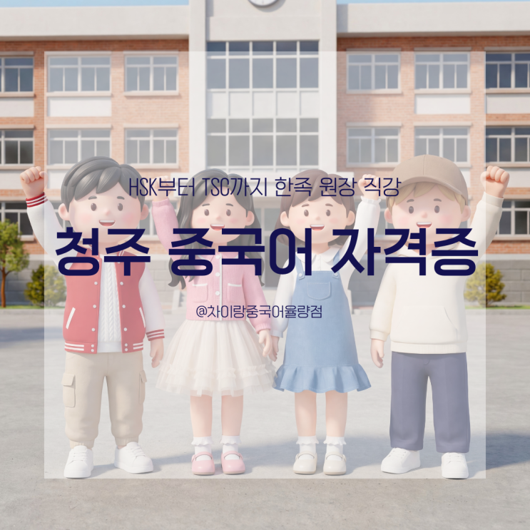 안녕하세요! 여러분의 스펙에 날개를 달아드리는 합격 메이커, 차이랑 중국어 청주 율량캠퍼스 짱나나 원장입니다. :D 본격적인 상반기 채용 시즌이나 대학 졸업, 이직, 승진 평가 시기가 다가오면 스펙 업그레이드를 위해 고군분투하시는 분들의 문의가 끊이지 않습니다. 그중에서도 수많은 대기업과 공공기관에서 파격적인 가산점을 부여하는 HSK(중국어 능력 시험)와 TSC(중국어 말하기 시험)는 이제 선택이 아닌 필수가 되어버린 강력한 스펙입니다. 하지만 마음을 다잡고 막상 책을 펼쳐보면, 방대한 한자와 처음 보는 어법 앞에서 어디서부터 어떻게 손을 대야 할지 막막함이 앞서실 텐데요. 소중한 시간과 비용을 낭비하지 않고 확실한 합....... <img src="https://blogthumb.pstatic.net/MjAyNjAyMjZfMTU4/MDAxNzcyMTE1Nzg0ODkz.0iOW-rolY1_HZtcHG4N8hrhITEFLqQ3YDcvTwVwXu7Mg.xSTK_7PQW3n24D5GxJ2n9hbNWYZ7KPrn_CAU_0teGbkg.PNG/1.png?type=s3" />