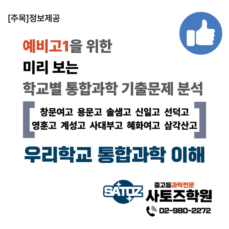 [주목][중고등과학전문][사토즈학원]예비고1을 위한 각 학교별 통합과학 기출문제 분석자료