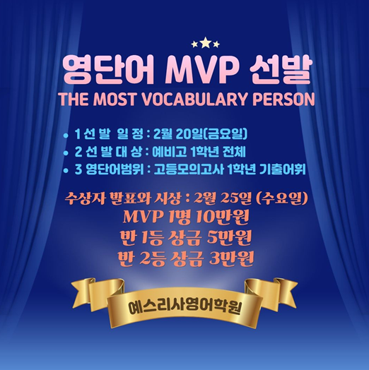 예스리사영어학원(영등) 예비고1 영단어 MVP 장학금 선발