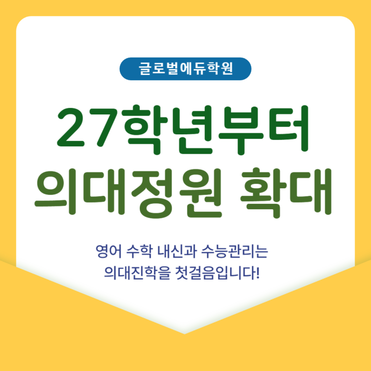 봄을 기다리는 2월, 새 학년 준비로 바쁘신 학부모님들께 인사드립니다. 지난 2월 10일 정부가 발표한 의대 정원 확대 방안이 입시 판도에 중요한 변화를 예고하고 있습니다. 이러한 의대정원확대는 단순히 의대를 지원하는 학생들 뿐만 아니라 전체적인 상위권 학생들의 입시를 좌우하기 때문에 반드시 잘알고 대비를 해야 합니다!! 이번 정책은 단순한 정원 증가가 아니라 지역 의료 체계 강화와 연계된 구조적 변화로, 의학계열 진학을 목표로 하는 학생들의 준비 방향에 실질적 영향을 미칠 것입니다. 정책의 핵심 내용을 분석하고 효과적인 대비 방안에 대한 이야기를 해볼까 합니다! 먼저 기존에 발표된 보건복지부의 계획에 따르면 의대 정....... <img src="https://blogthumb.pstatic.net/MjAyNjAyMTZfMTUy/MDAxNzcxMjE2MTk0MTE2.fLYAWMJWbINmhsD5ieH0UlD0UdRN5aBD11MsYCtNdq4g.O-RkIq2dCEJHm76JIvaVHS7Vi7EWD0gdZKG7gmi0oK4g.PNG/27%C7%D0%B3%E2%C0%C7%B4%EB%C1%A4%BF%F8%C8%AE%B4%EB-002_%284%29.png?type=s3" />