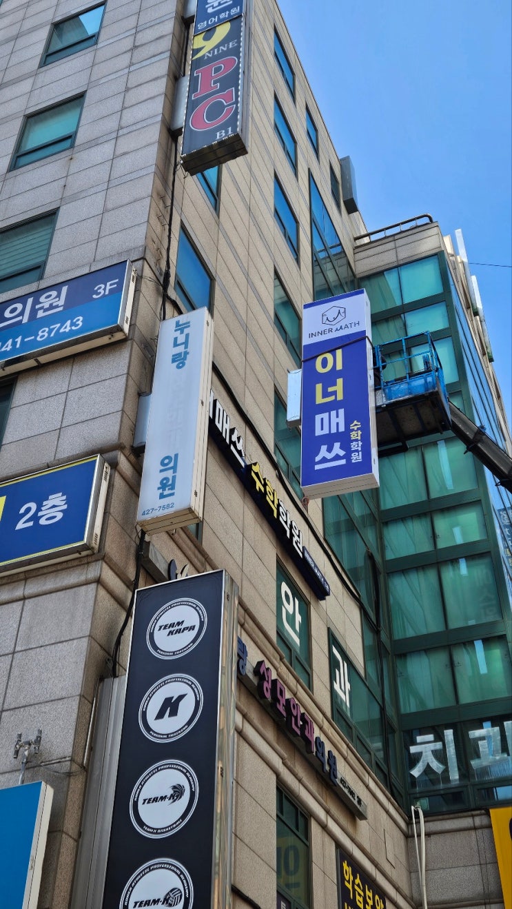 다른 곳에서 하다가, 여기 건물에 2019년에 들어왔는데, 벌써... 7년차가 되어간다. 간판 자리가 좋지않고 없어서, 일일히 다 설명할 수 없는 많은 우여곡절이 있었는데, 결국 달게되었다!! 미흡하고, 마음에 들지 않는 부분도 있긴 하지만, 그래도 달게 된 것에 감사하며, 더 열심히 달려봐야겠다!! 사실 학원이라는게 간판이 큰 의미가 없다고 생각한다. 왜냐면 지금까지 간판 없이도, 너무도 감사하게 입소문과 소개만으로 잘 운영을 해왔고, 대기도 있는 상황이니까..!! 하지만 간판을 다는 이유는 사실 어느정도는 아이들을 위해서기도 하다. 본인이 다니는 학원이 간판도 없고, 다른 아이들이 하나도 모른다면, 그 나이대에 느껴지는 약간....... <img src="https://blogthumb.pstatic.net/MjAyNjAzMTBfMjYw/MDAxNzczMTI1MjU0MTEx.uZrAGPA6oI8QjqnAP_WFyyLdNGenJuTY9ytzlEQzO6Ig.TOaFxG9hCyVoLRQpEx5J1A7dFpbhQc5z1Ak43WWtJ-Eg.JPEG/KakaoTalk_20260310_153017436_06.jpg?type=s3" />