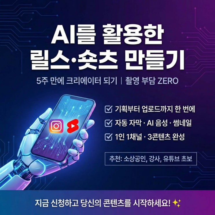AI를 활용한 릴스·숏츠 만들기 강좌(대구유튜브영상학원)