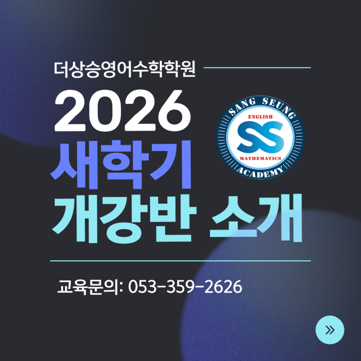 '감'이 아닌 '이해'로 영어 실력을 만드는 침산동 영어학원 더상승영어수학학원! 안녕하세요. 침산동 초·중·고 영어학원, 더상승영어수학학원입니다 초등 고학년부터 중등으로 넘어가는 시기에는 학습량이 크게 늘고, 학교 성취도뿐 아니라 앞으로의 내신과 수능까지 연결되는 기반이 만들어지기 때문에 기본기를 탄탄히 잡아주는 수업 구성이 중요합니다. 그래서 오늘은 더상승영어수학학원 3월 영어 개강반을 자세히 안내드리겠습니다. 우리 학원 블로그에 자주 방문해 주실 수 있도록 학부모님들께 도움되는 이야기들로 찾아뵙겠습니다! ✅ 3월 영어 개강반 안내 이번 3월 개강반은 학년별 수준과 학습 흐름에 맞춰....... <img src="https://blogthumb.pstatic.net/MjAyNjAyMjVfNTkg/MDAxNzcyMDAyODU3MjYx._m0R_l91d-koANolFT78eF-EtPjiAjAKGYhtiIk3hkAg.YvV6btFFbkUkkkq9_PzcOFg6O1HhfVrvmdvO5s2yrtIg.PNG/1.png?type=s3" />