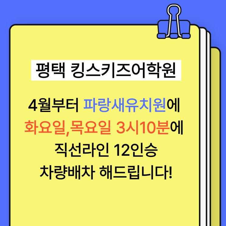 평택킹스키즈어학원 파랑새유치원 차량 배차 안내 (4월부터)