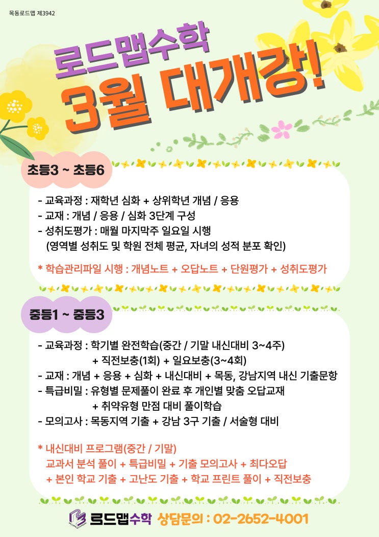 [목동로드맵 수학학원 공지사항] 3월 정규반 대개강!