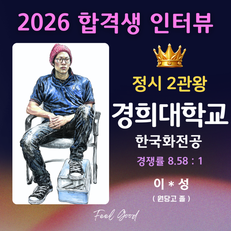 안녕하세요! 필굿 한국화 미술학원의 2026 감격의 정시 합격 두 번째 스토리를 가져왔습니다! 과연 경희대학교와 인천대학교에서 최초합 2관왕을 얻어낸 학생의 합격 비결은 무엇이었을지 함께 알아보겠습니다. Q. 동양화를 시작한 계기는 무엇이었나요? A. 저는 예중 예고 출신도 아니고, 미술 중점반조차 존재하지 않는 일반고를 다녔습니다. 개인적으로는 미술에 꾸준한 관심이 있었으나 당시 진로는 불분명했으며 미술과의 접점이 아예 없는 학교 수업에서 흥미를 느끼지 못하고 방황하다가, 고등학교 2학년 때 막연히 미대에 진학해야겠다는 결정을 내렸습니다. 어렸을 적 제게 미술을 가르쳐 주셨던 은사님의 도움을 받아 뒤늦게 입시 미술....... <img src="https://blogthumb.pstatic.net/MjAyNjAyMjNfMTMw/MDAxNzcxODU1MzI5OTM0.yMu_DTtN9mX2o-8QOZ2dvHDcOHQJzHtryjSoQbtrJMEg.z54RMHN5_HqhSK9QrHo9NUnytXvP7-W30Xxh7SoxOfYg.PNG/1.png?type=s3" />