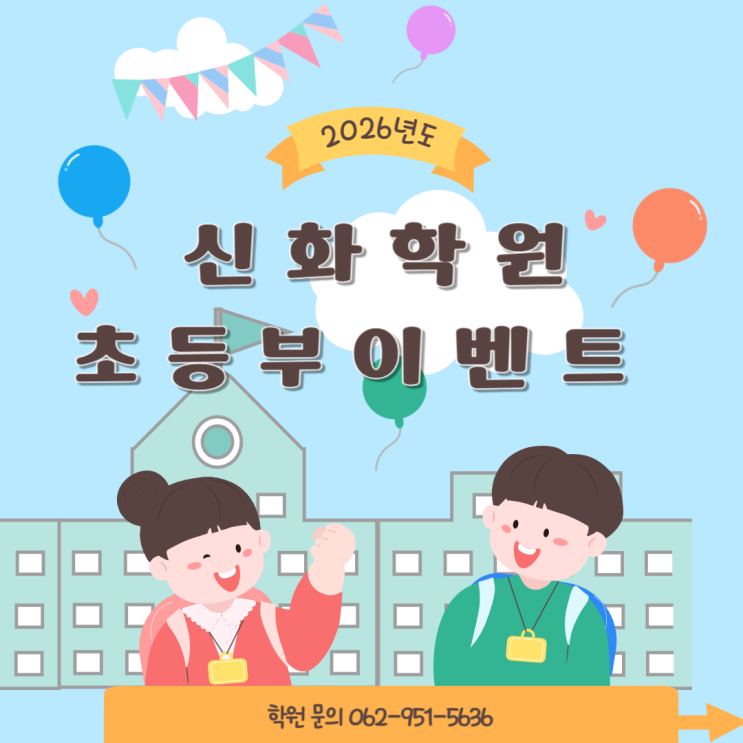 안녕하세요, 신화학원입니다 학기 초 가장 중요한 시기, 기초를 단단히 잡아야 할 초등 1학년부터 4학년까지 특별 이벤트를 진행 중입니다. 초등부 특별 혜택 안내 초1 ~ 초4 영·수 등록 시 국어 · 사회 · 과학 무료 지원 단순히 과목 수만 늘리는 이벤트가 아닙니다. 초등 시기에는 과목 간 연결 학습이 무엇보다 중요합니다. ✔ 국어 – 독해력과 문제 이해력 강화 ✔ 사회·과학 – 배경지식과 사고력 확장 ✔ 영어·수학 – 기본기 완성 영어와 수학만 잘한다고 성적이 완성되지 않습니다. 국어 이해력이 받쳐줘야 수학 서술형이 풀리고, 사회·과학 개념이 잡혀야 사고력이 자랍니다. 왜 초1~초4가 중요한가요? 이 시기는....... <img src="https://blogthumb.pstatic.net/MjAyNjAyMjRfMTk5/MDAxNzcxOTE3MjU4NzA5.y0_L6npdvj-IHaRaFgyUQ7ul1rwBNgw0ENQCoJ2PEIkg.VW26i_rG7TIyuZo3cF1zhT7rvYT7iTwJtYUop4DHagcg.PNG/%BC%D2%BF%B5_%C5%DB%C7%C3%B8%B4-019.png?type=s3" />