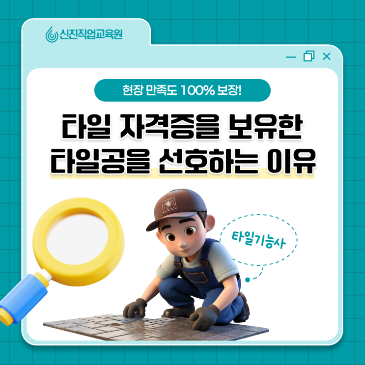 최근 건설·리모델링 시장이 활기를 띠면서 현장에서는 ‘검증된 기술자’에 대한 수요가 더욱 높아지고 있습니다. 특히 타일 기능사 자격증 보유자는 시공 품질과 작업 속도를 동시에 확보할 수 있는 인력으로 인정받으며 선호도가 꾸준히 상승하는 추세이죠. 이처럼 마감 완성도가 곧 공간의 가치로 이어지는 만큼, 숙련도와 전문성을 공식적으로 증명한 인력에 대한 신뢰도 역시 커지고 있습니다. 이번 포스팅에서는 타일 자격증 보유자가 현장에서 왜 주목을 받고 있는지 그 배경과 이유에 대해 자세히 알아보도록 하겠습니다. 함께 보면 좋은 글 <숙련된 타일공 되기 위한 타일 자격증 준비전략> 타일 자격증 보유한 인재가 현장에서 주....... <img src="https://blogthumb.pstatic.net/MjAyNjAyMTNfMjIz/MDAxNzcwOTU4MzUzMjEw.HKHjCrO-XKaXFo6li0IhgAPD_lZQ2woHwPCBS-j1sBcg.2I-E0tOPS1ZftyLmbiSDVx6tKhN8bc_6nHMEf4IzY-kg.PNG/%C5%B8%C0%CF%28%B3%B2%C4%B3%29_%281%29.png?type=s3" />