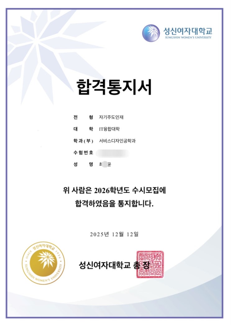 [2026학년도] 합격사례(충남대, 성신여대 등)