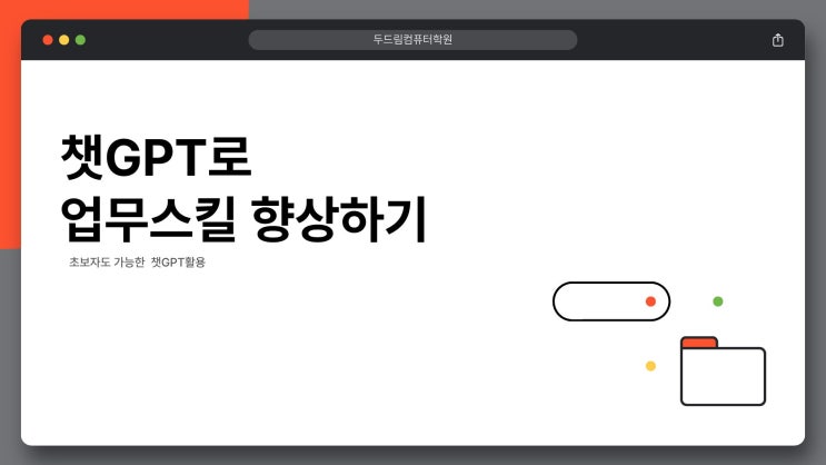 안녕하세요 두드림컴퓨터학원 성남분당점입니다! 최근 챗 GPT를 활용한과정들을 많이 소개 하고 있는데요 오늘도! 챗GPT를 활용한 과정이랍니다 ㅎㅎ 오늘은 [챗GPT를 활용한 업무스킬 향상] 과정이에요! 요즘 직장인 필수 역량으로 떠오른 키워드는 바로 챗GPT 활용 능력입니다. 단순히 챗GPT를 “써봤다”가 아니라, 보고서 작성, PPT 제작, 이메일 작성 등 실제 업무에 적용할 수 있는 능력이 중요해지고 있습니다! 문서 작성할 때 막막했던 경험, PPT 디자인 때문에 시간 오래 걸렸던 경험, 이메일 한 통 쓰는데도 표현이 고민됐던 적 있으신가요? 이제는 혼자 고민하지 않아도 됩니다. 챗GPT를 활용한 업무스킬 향상 과정에서 AI를 활용해 업....... <img src="https://blogthumb.pstatic.net/MjAyNjAyMTlfOTYg/MDAxNzcxNDc3ODA1MDcx.bgUqJoGMQnjcopP49GzBoiR_qYeT9uznK3X28WvhqFYg.UVoEfxbGNWR-WBZBd12z_D1g5EjSSMRiVp_0mRTBUwAg.JPEG/1.jpg?type=s3" />