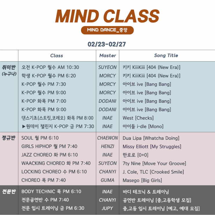 중앙점 [2월 넷째주 마인드클래스] | 중앙점 공지 | 안산 중앙동 댄스학원, 안산댄스학원