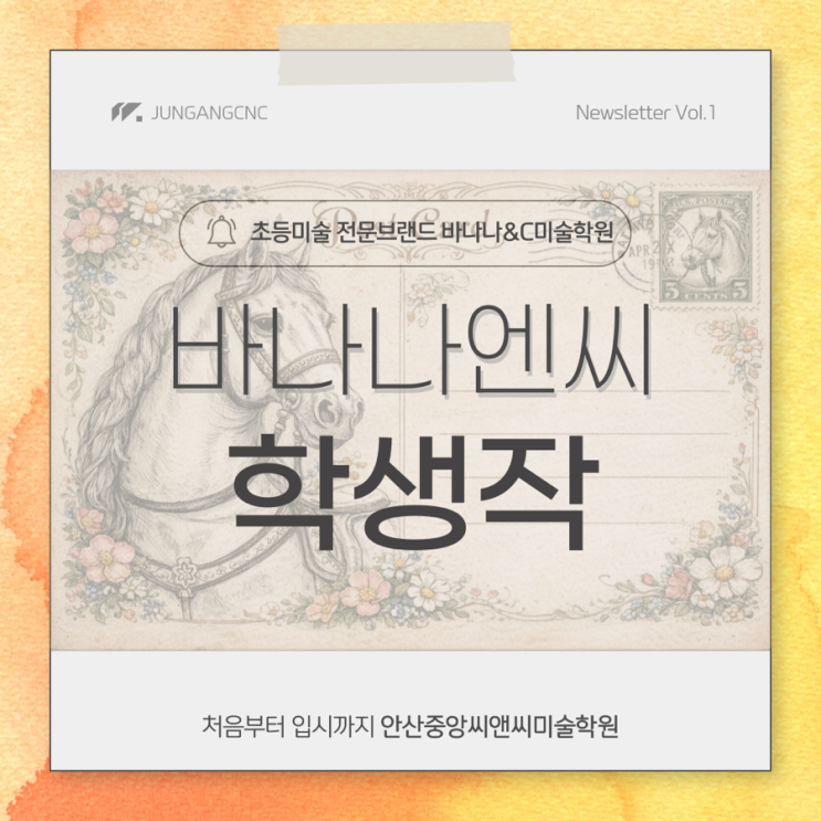 안녕하세요 안산 고잔 씨앤씨 미술학원 고학년 다빈치반입니다 이번시간에는 2026년 병오년을 맞이하여 말을 펜화로 그리며 선의 방향과 굵기를 활용한 묘사 방법을 이해해보는 수업이었어요~! 먼저 말의 사진을 보면서 스케치를 해주고 펜으로 묘사를 해가며 명암 표현과 말의 근육 구조를 관찰해주었는데요 밝고 어두움을 관찰하며 입체적으로 표현하는 힘이 길러졌답니다 그리고 이렇게 완성한 작품을 AI로 빈티지 영문 신문과 엽서로 제작해주었답니다 너무 감성적이고 예쁜 빈티지 엽서죠~ 엽서에 맞게 우표도 제작해주었어요 정말 우체국에서 팔아도 될만한 우표 자신의 그림이 다양한 형태로 활용될 수 있....... <img src="https://blogthumb.pstatic.net/MjAyNjAyMjNfNDUg/MDAxNzcxODIzNDE2NzM3.27Otgp1O2W-W2YS4A7zgXKTSbs6VT5O8paPXkckmjdsg._a-RanxpYZ-nVPf3h97R1NFnjsZQvTTmidcScNghQN0g.PNG/IMG%A3%DF9307.PNG?type=s3" />