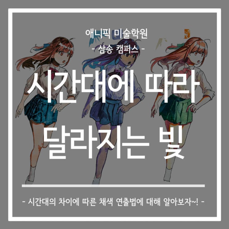 안녕하세요! 삼송 고양시 미술학원 / 대곡 미대입시 애니픽 미술학원 삼송점입니다~ 새해를 맞이한지도 벌써 일주일이 지나고 있는데요~ 우리 삼송 친구들은 신년을 맞아 더 열심히 그림을 그리고 있습니다! 오늘 살펴볼 수업은 <시간대에 따라 달라지는 빛>인데요~ 같은 캐릭터라고 해도, 시간대에 따라 빛의 양이 달라진다는 것 알고 계신가요? 빛의 양에 따라 채색과 연출 방식에도 약간씩 차이가 생기게 되는데요. 원하는 빛 연출을 하기 위해서는 많이 연습하는 것이 좋을 것 같아요. 먼저, 다양한 시간대 채색을 연습하기 위해서 스케치를 합니다. 빠르고 정확한 스케치를 하려면 선을 길게 써주는 것이 중요합니다~^^ 첫 번째로, &#....... <img src="https://blogthumb.pstatic.net/MjAyNjAxMDdfMTQ1/MDAxNzY3NzYyNzk0NTcz.35MhLWuxJWG6HoqgzXsr1vT6iJo9cpM7Hz7gOeEfIxYg.P8QNrjpsiFagNtPUy3sKSmGCNk3arrXLAqIQjTM0z10g.JPEG/0108_%B4%EB%C7%A5%C0%CC%B9%CC%C1%F6.jpg?type=s3" />