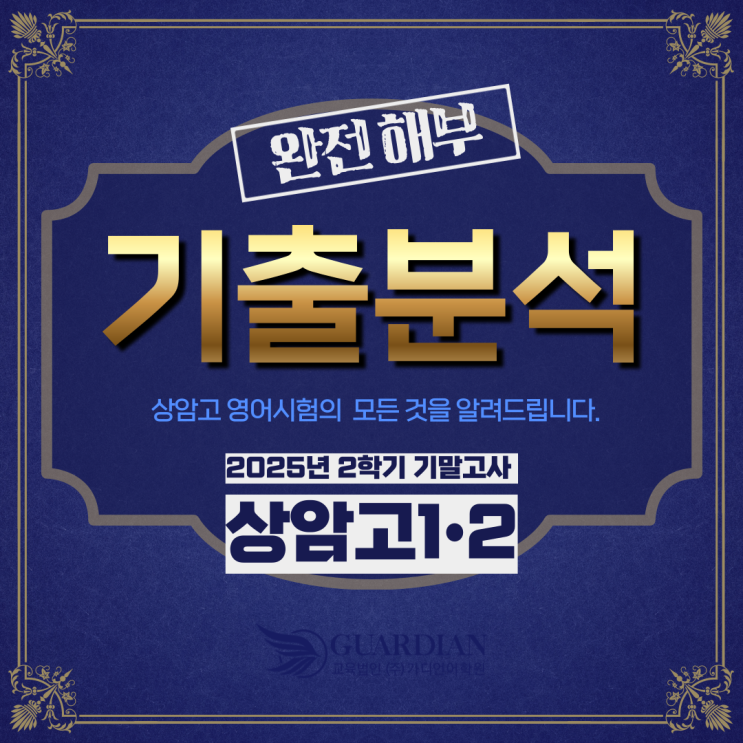안녕하세요. 가디언어학원은 매 시험 종료 후 수업하신 선생님들이 직접 시험문제를 직접 풀어보고 원 시험 범위와 대조하면서 기출을 철저히 분석합니다. 이를 통해 출제자의 의도 학생들이 틀리는 이유를 정확하게 파악한 후 기본기를 확충하기 위한 정규 수업 그리고 전략적 시험 대비를 하기 위한 내신대비 수업의 커리큘럼과 교재 제작 계획에 반영합니다. 단지 보여주기를 위해서 AI 툴로 5분안에 끝나는 기출분석 단순 유형 통계 기출분석과는 목적도 차원도 다릅니다. 기출 분석은 수업을 하는 선생님이 문항 마다 단어 마다 선지 마다 아주 세밀하게 이루어져야 합니다. 연구의 깊이가 효과의 크기입니다. 상암고1 상암고2 함께 보면 좋....... <img src="https://blogthumb.pstatic.net/MjAyNjAxMTBfMjA4/MDAxNzY4MDIzNTc5ODEz.Znm6rg4bIQyBhCazqtX6Ot-QGEibnnMDiHXEG8Y3FGYg.hAQo_mOvWv-8ODNgeUkih88lHKwbFz8UgArbVJCGFkYg.PNG/001.png?type=s3" />