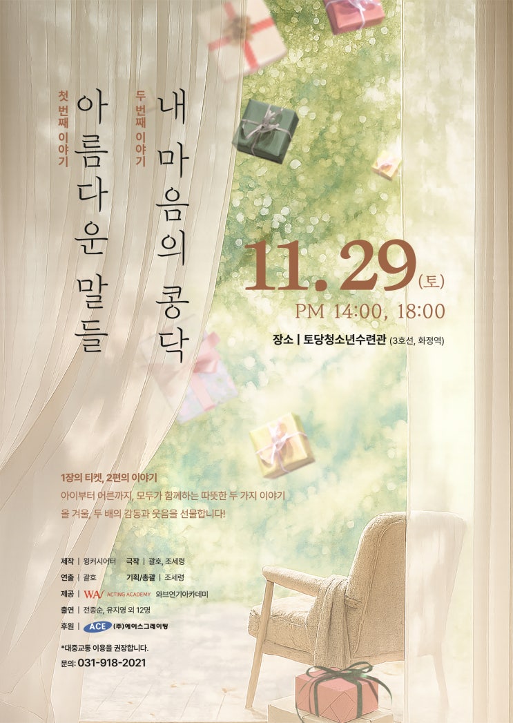 제1회 왓어보이스 정기공연 소개 <내 마음의 콩닥> <아름다운 말들>, 일산 연기 학원 와브 연기 아카데미