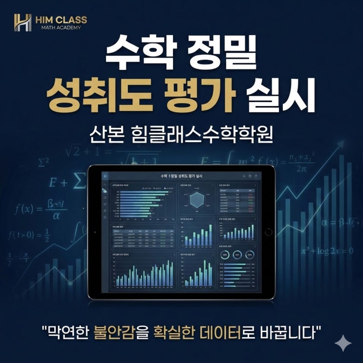 안녕하세요. 산본 수학의 중심! 산본 힘클래스수학학원입니다. 겨울방학은 지난 학년의 학습 결손을 메우고, 다가올 새 학년의 도약을 준비해야 하는 가장 중요한 시기입니다. 많은 학생과 학부모님께서 새 학년 수학 학습에 대한 막연한 불안감을 가지고 계십니다. 하지만 수학은 '막연한 열심히'가 아닌, '정확한 진단에 기반한 전략적 학습'이 성패를 좌우하는 과목입니다. 성공적인 학습 로드맵을 설계하기 위해서는 가장 먼저 학생의 현재 객관적인 위치를 파악해야 합니다. 이에 산본 힘클래스수학학원에서는 재원생들을 대상으로, 단순 레벨 테스트를 넘어선 심층적인 수학 정밀 성취도 평가를 실시합니다. 성취도 평....... <img src="https://blogthumb.pstatic.net/MjAyNjAyMjNfOTEg/MDAxNzcxODExNjcxNDMz.-gGYeU1BktpDEH2nMbBtyqEi6ZQ1ZhA9FFd64wULsiUg.-4i0Fqy19j9e0NYOEDQcgNr4FlWIyE7qtzfwvN6I0c8g.JPEG/%BC%BA%C3%EB%B5%B5%C6%F2%B0%A11.jpg?type=s3" />