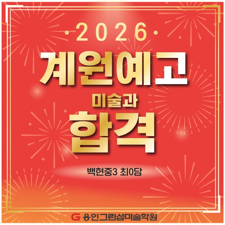 2026 계원예술고등학교 미술과 합격을 축하합니다. - 백현중3 최0담 - . . . 용인그린섬미술학원 031.339.3335 명지대사거리 더와이스퀘어맞은편 <예고입시 예중입시 미대입시> <img src="https://blogthumb.pstatic.net/MjAyNTEyMzBfMzEg/MDAxNzY3MDc3Mjc2ODM5.ktYda-QWqikAQCkdSXb_OB91waBZgAux9ZRxqvSf0qwg.g5d8QlOvcL0YJKlecX6a6FEQIDu3cu3W4mMZE6ZI5v8g.JPEG/2026%B0%E8%BF%F8%BF%B9%B0%ED_%B9%E9%C7%F6%C1%DF.jpg?type=s3" />