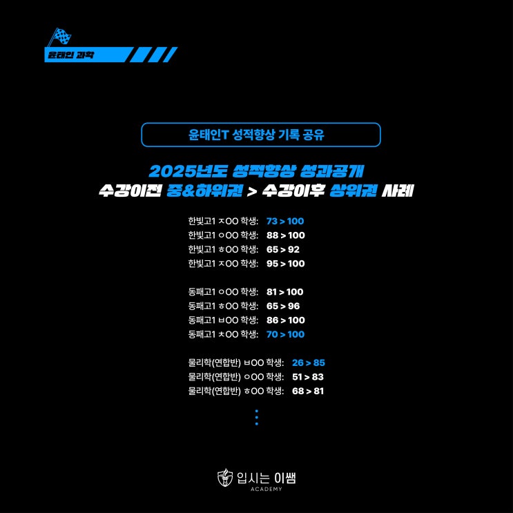 동패고·한빛고 과학 성적 수직 상승의 비밀: 윤태인 과학만의 추월차선 1:1 밀착 관리 시스템 - 입시는이쌤 학원