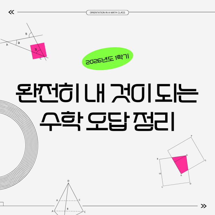 수학 공부는 계단 오르기와 같습니다. 꾸준히 한 계단씩 밟고 올라가는 것이 지치지 않고 정상에 도달할 수 있는 방법입니다. 오답을 따로 정리하는 것은 당장은 더디게 느껴질 수 있지만 다시 한번 꼼꼼하게 확인하고 넘어갈 수 있는 중요한 과정이죠. 그런데 모르는 문제를 해설을 참고해 노트에 옮겨 적는 것은 단순한 정리에 불과합니다. '아, 이렇게 푸는 거였어?' 라고 대충 알게 된 문제는 금방 머릿속에서 사라져 버립니다. 그래서 비슷한 유형의 문제가 나와도 또다시 막히게 되는 악순환이 반복됩니다. 진짜 오답 노트는 단순히 눈으로 이해하고 손으로 옮겨 적는 행위를 넘어서야 합니다. 충분히 반복해서 문제를 풀고, 그....... <img src="https://blogthumb.pstatic.net/MjAyNjAyMTlfMTc4/MDAxNzcxNDc5NDUxNzMz.NkONcCqRdT0Ow4fsFwp2R5xtw9_NtZ6H_IaXa4Bkod8g.t9zy9mFwBv85uTjdubqKUQGP48UYTfyoSqiGXCw7dOcg.PNG/%BC%F6%C7%D0_%BF%C0%B4%E4_%C1%A4%B8%AE.png?type=s3" />