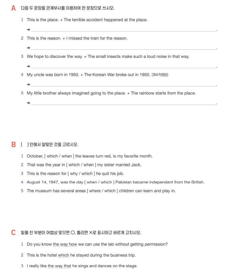 관계부사 that, 모든 관계부사를 대신하여 사용할 수 있을까? 관계부사를 대신하는 that, 어디까지 가능할까? 학생들은 "선행사에 따라 관계부사 where, when, why, how중 하나를 쓴다"고 알고 있습니다. 하지만 원어민의 문장이나 원서에서는 이 자리에 that이 쓰인 것을 심심치 않게 볼 수 있죠. 이를 문법 용어로 '관계부사 대용의 that'이라고 합니다. 편의상 관계부사 that이라고 부르겠습니다. 1. 관계부사 대용의 that이란? 먼저 관계사절에 대해 잠시 짚어봅시다. 관계부사(where, when, why, how)가 이끄는 절은 선행사를 수식하는 형용사절입니다. 이때 접속사 that이 관계부사의 기능을 대신하기 때문에 뒤에 완....... <img src="https://blogthumb.pstatic.net/MjAyNjAyMTFfMTcg/MDAxNzcwNzkyNTAwMTQ0.ZkGxHTZtCURa_nFIiZ0xU8rc4wpcqndHcLAlM8MGxiIg.XlhUc1Yzy8VhfcTgVibEmblMNEKGRf8ZEpAfvtYLMhMg.PNG/image.png?type=s3" />
