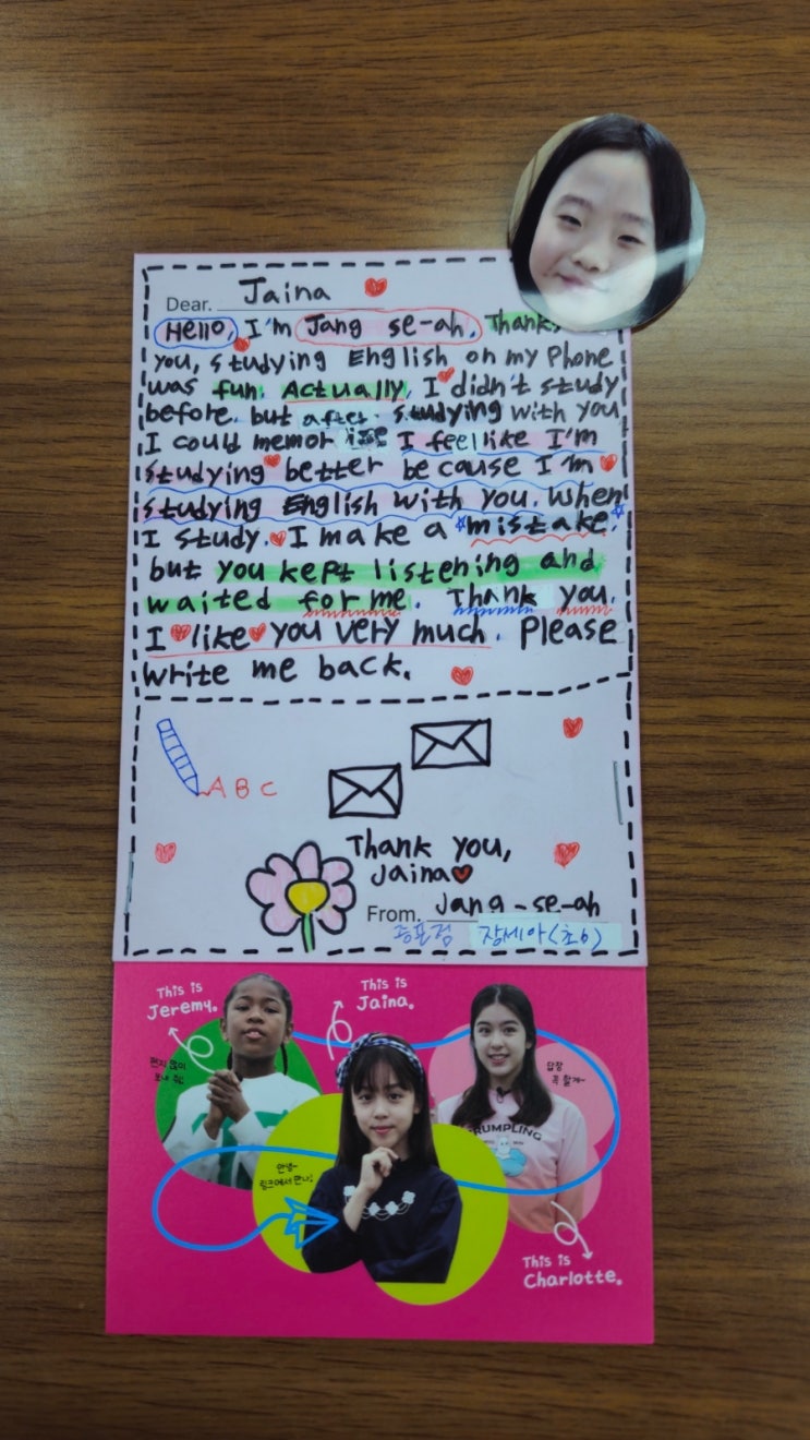 뮤엠에서 새 학기 첫 번째 미션을 합니다. 직접 쓴 영어 편지를 링크 친구들에게 보내서 친구들의 답장을 받는 미션인데요 괴연 답장을 받게 될 주인공은 누가 될까요? 3명의 친구들 중 1명을 골라서 편지를 쓰면 됩니다. 우리 친구들이 이렇게 정성이 가득한 엽서들을 쓰고 그리고 예쁘게 꾸몄답니다 정성이 많이 가는 만큼 그리고 상품에 대한 열망이 클수록 엽서는 꽉꽉 채워지고 컬러풀해졌답니다. 한국을 소개하면서 한국 음식을 정성껏 그려 놓기도 하고 엽서에 하트가 날아다니고 좋아하는 동물을 소개하면서 동화의 한 장면 같은 그림도 그려보고 친구가 되고 싶다고 커다란 하트도 그려봤어요 친구에게 피아노 치는 것이 취미라고 피아....... <img src="https://blogthumb.pstatic.net/MjAyNjAyMTFfMzEg/MDAxNzcwNzkyMzM5NDEy.ZOmkNDu5dtbsy-CpdalbiofGdPqtAqIEhXX28fkVF5cg.elofHcXxCNPxyJkw4nf9U29w2Ruyxrtc-6Ho5oiWWoUg.JPEG/900%A3%DF20260211%A3%DF151054.jpg?type=s3" />